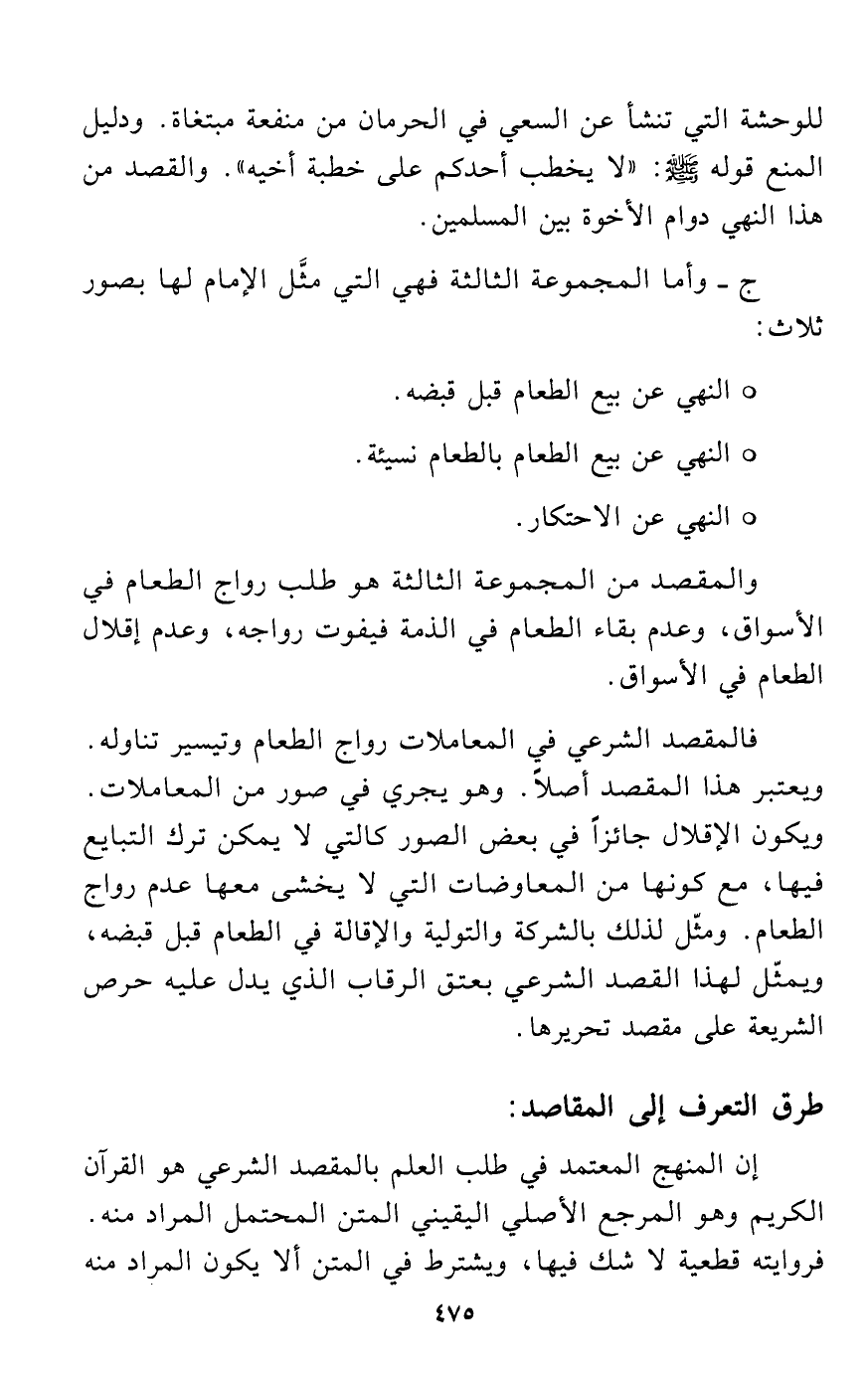 والمقصد من المجموعة الثالثة هو طلب رواج الطعام في الأسواق، وعدم بقاء الطعام في الذمة فيفوت رواجه، وعدم إقلال الطعام في الأسواق.