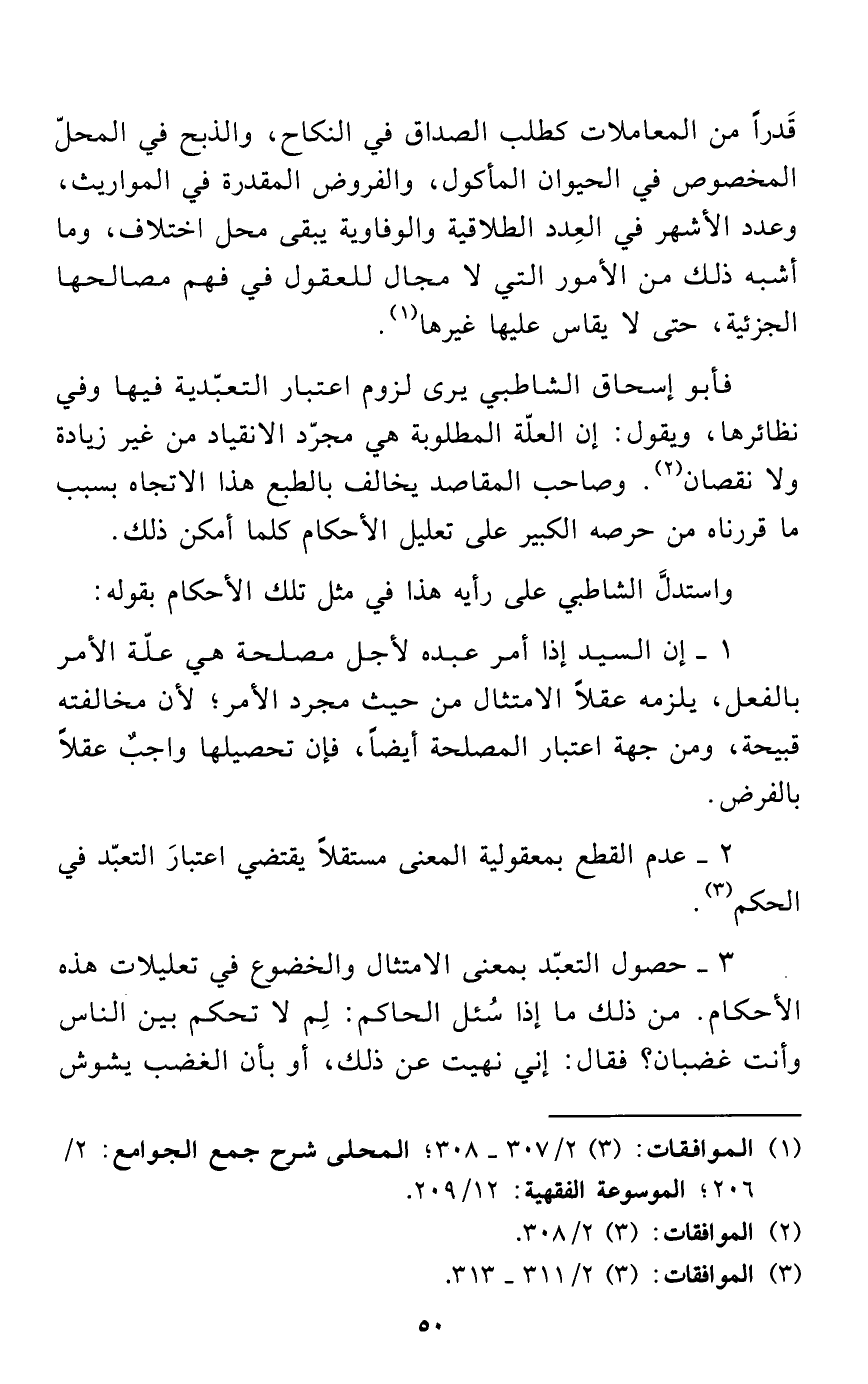 (¬1) الموافقات: (3) 2/ 307 - 308؛ المحلى شرح جمع الجوامع: 2/ 206؛ الموسوعة الفقهية: 12/ 209.