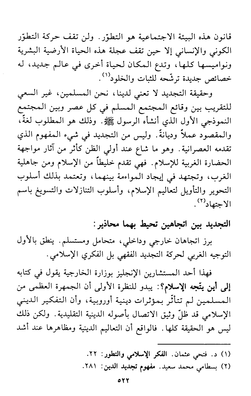 (¬1) د. فتحي عثمان. الفكر الإسلامي والتطور: 22.