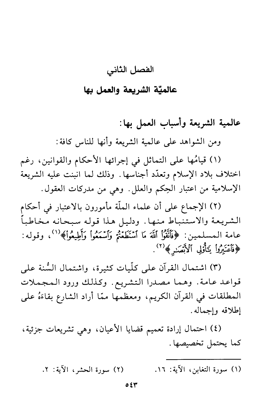الفصل الثاني: عالميّة الشريعة والعمل بها