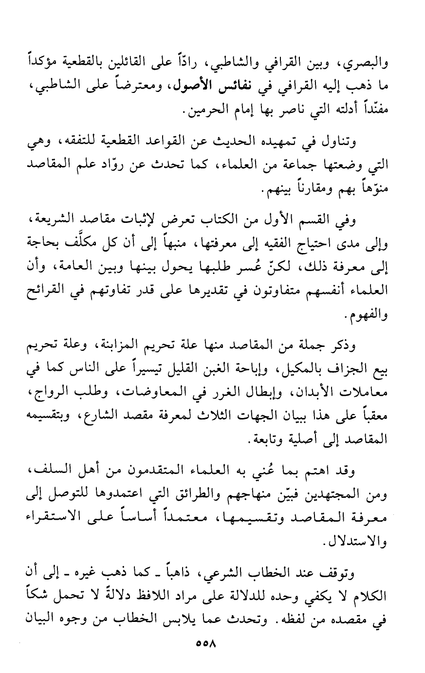 والبصري، وبين القرافي والشاطبي، رادّاً على القائلين بالقطعية مؤكداً ما ذهب إليه القرافي في نفائس الأصول، ومعترضاً على الشاطبي، مفنّداً أدلته التي ناصر بها إمام الحرمين.