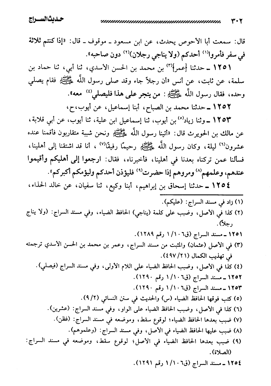 1252- حدثنا محمد بن الصباح، أبنا إِسْمَاعِيلُ، عَنْ أَيُّوبَ، ح،