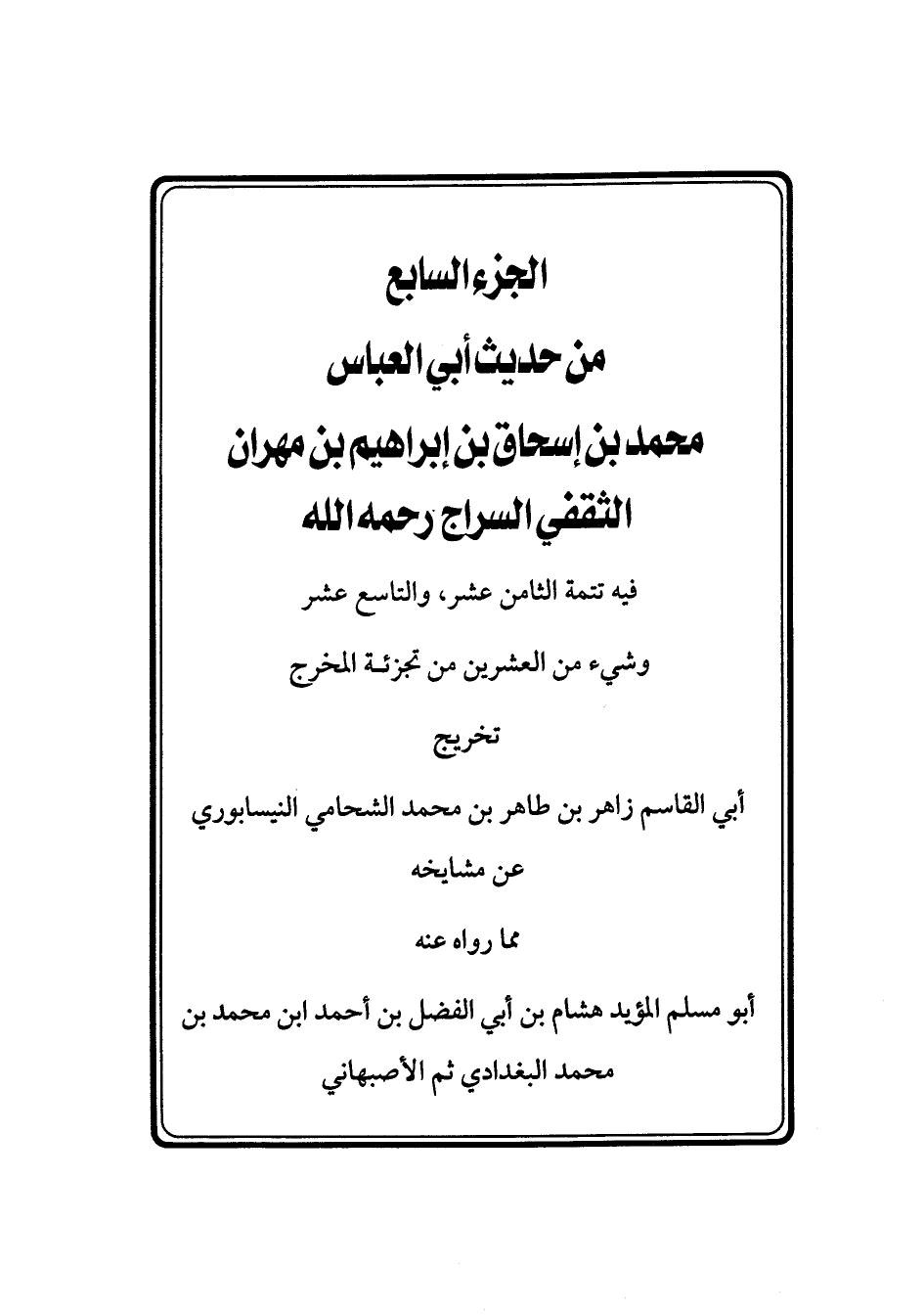 الْجُزْءُ السَّابِعِ مِنْ حَدِيثِ أَبِي الْعَبَّاسِ مُحَمَّدِ بن إسحاق بن إبراهيم بن مهران الثقفي السَّرَّاجِ رَحِمَهُ اللَّهُ