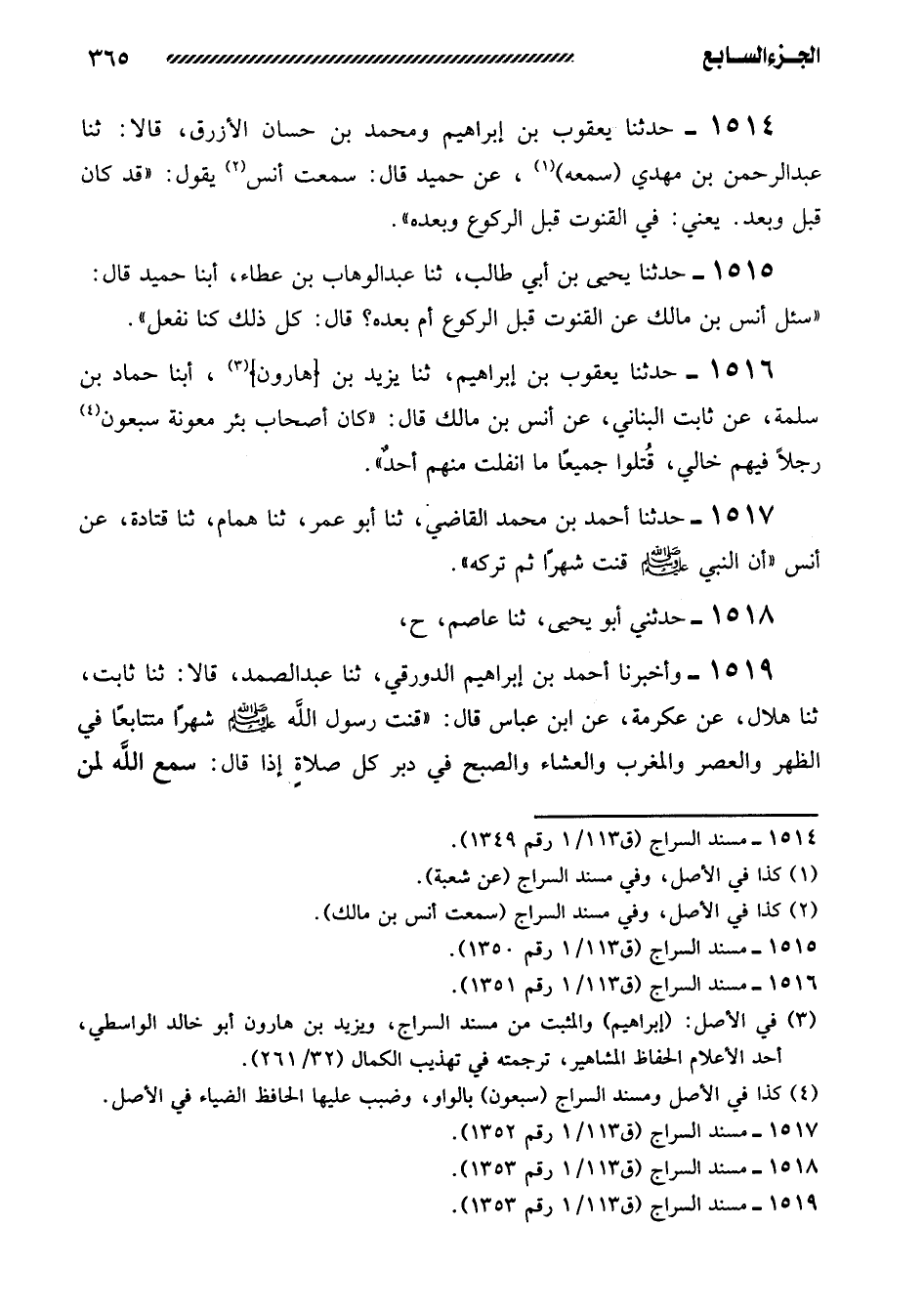 1514- حَدَّثَنَا يَعْقُوبُ بْنُ إِبْرَاهِيمَ وَمُحَمَّدُ بْنُ حَسَّانٍ الأَزْرَقُ، قَالا: ثنا عَبْدُ الرَّحْمَنِ بْنُ مَهْدِيٍّ (سمعه) ، عن حميد قال: سمعت أنس يَقُولُ: ((قَدْ كَانَ قَبْلُ وَبَعْدُ. يَعْنِي: فِي الْقُنُوتِ قَبْلَ الرُّكُوعِ وَبَعْدَهُ)) .