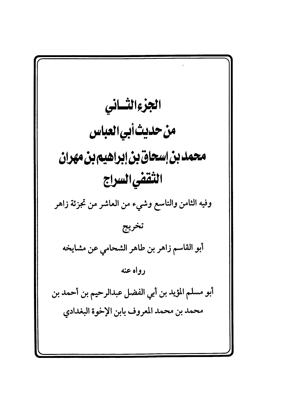 الْجُزْءُ الثَّانِي مِنْ حَدِيثِ أَبِي الْعَبَّاسِ مُحَمَّدِ بن إسحاق بن إبراهيم بن مهران الثقفي السَّرَّاجِ