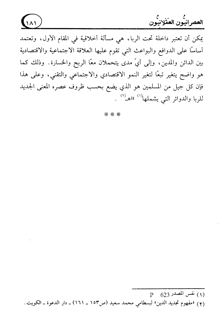 (2) "مفهوم تجديد الدين" لبسطامي محمد سجد (ص 153 - 161) - دار الدعوة - الكويت.