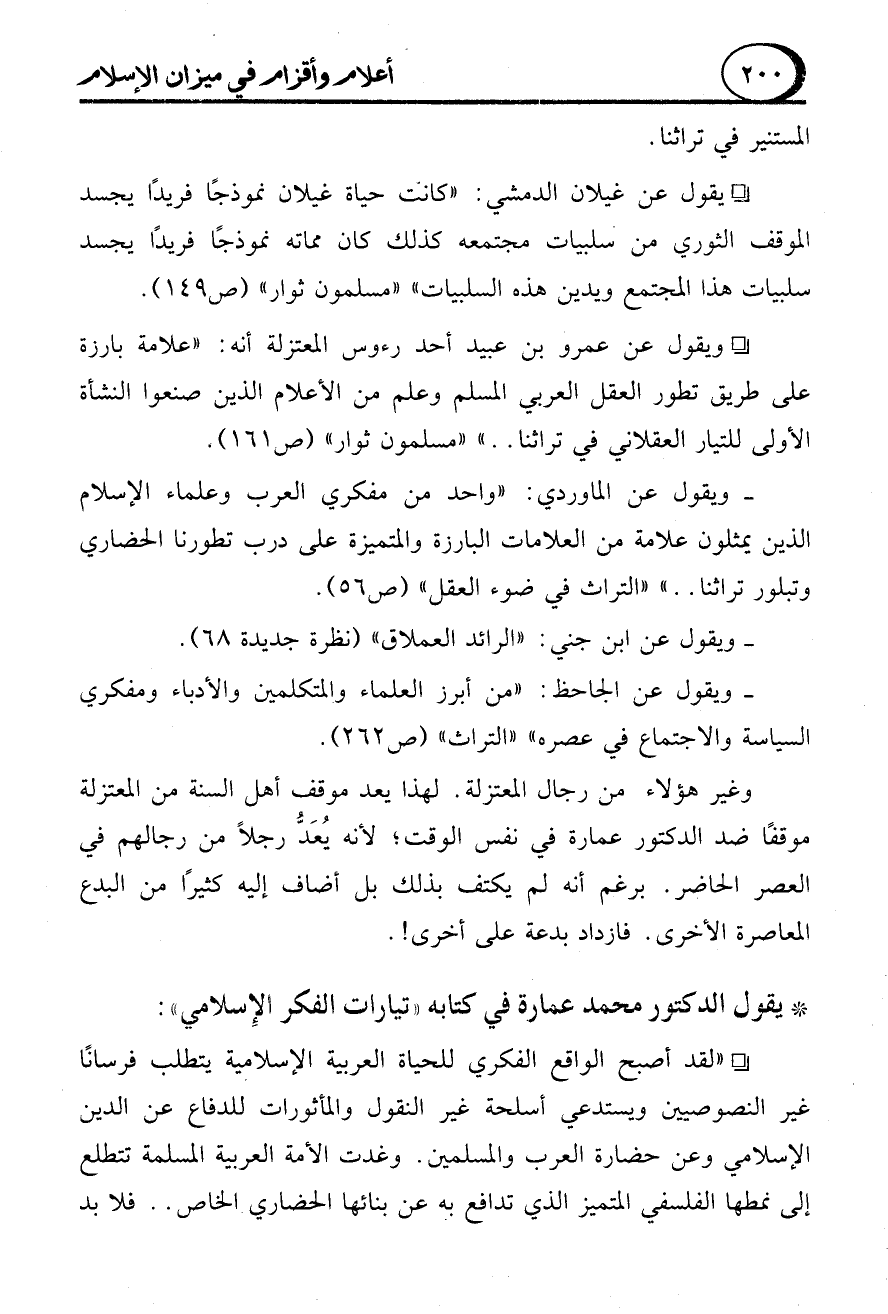 * يقول الدكتور محمد عمارة في كتابه" تيارات الفكر الإِسلامي":