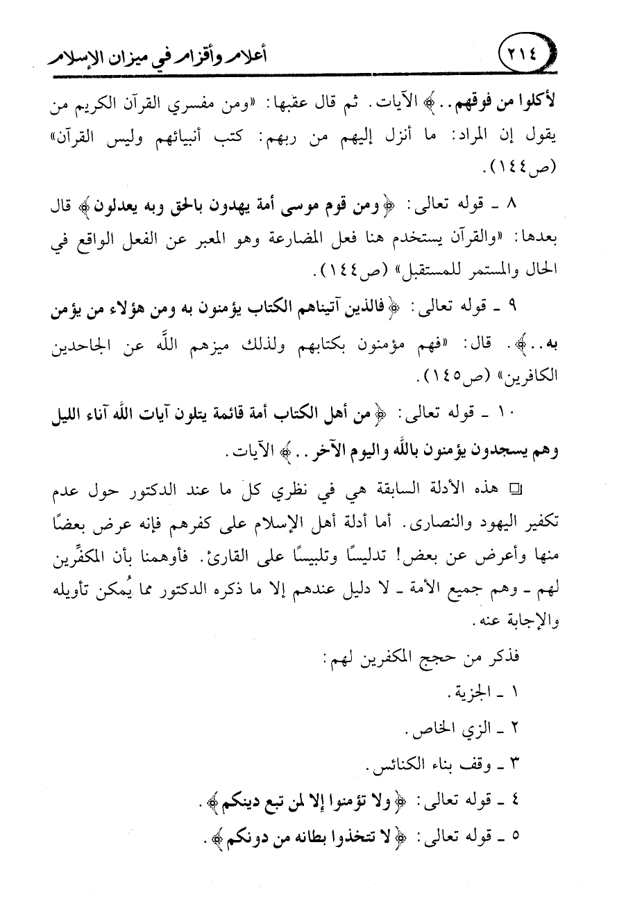 9 - قوله تعالى: {فَالَّذِينَ آَتَيْنَاهُمُ الْكِتَابَ يُؤْمِنُونَ بِهِ وَمِنْ هَؤُلَاءِ مَنْ يُؤْمِنُ بِهِ .. }. قال: "فهم مؤمنون بكتابهم ولذلك ميزهم الله عن الجاحدين الكافرين" (ص 145).