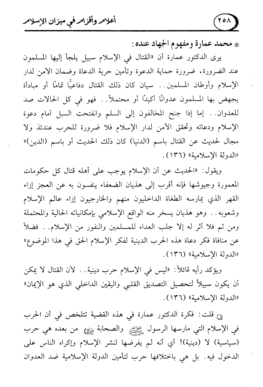 * محمد عمارة ومفهوم الجهاد عنده: