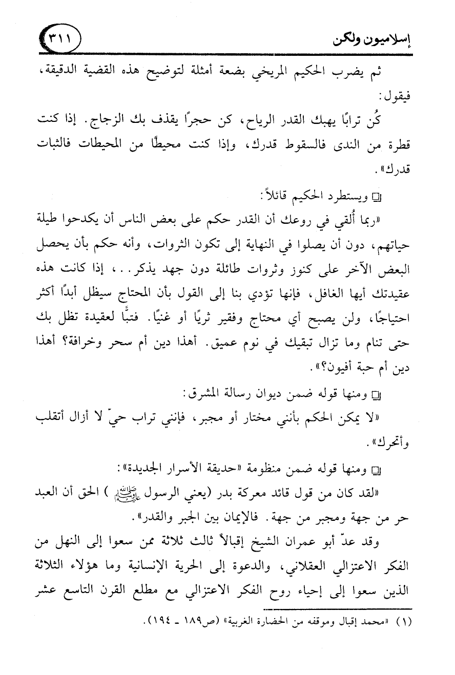 (1) "محمد إقبال وموقفه من الحضارة الغربية" (ص 189 - 194).