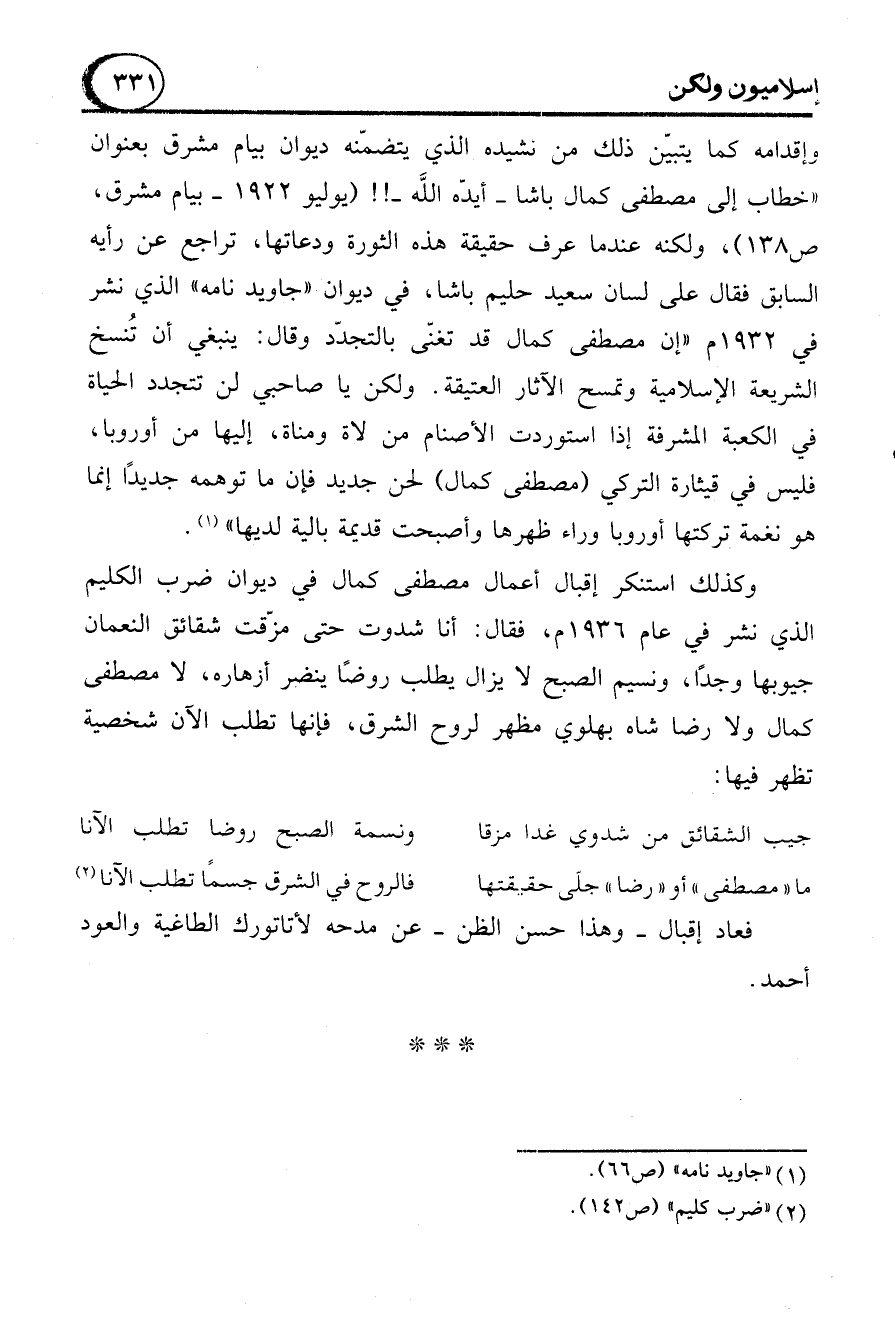 فعاد إقبال -وهذا حسن الظن- عن مدحه لأتاتورك الطاغية والعود أحمد.