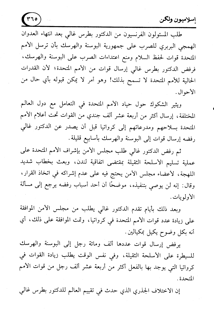 وبعد ذلك بأيام تقدم الدكتور غالي يطلب من مجلس الأمن الموافقة على زيادة عدد قوات الأمم المتحدة في كرواتيا، وتمت الموافقة على ذلك، أي أنه بكل وضوح يكيل بمكيالين.