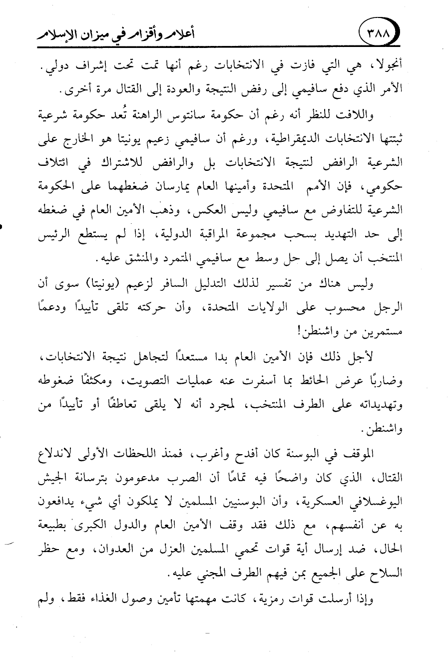 الموقف في البوسنة كان أفدح وأغرب، فمنذ اللحظات الأولى لاندلاع القتال، الذي كان واضحًا فيه تمامًا أن الصرب مدعومون بترسانة الجيش اليوغسلافي العسكرية، وأن البوسنيين المسلمين لا يملكون أي شيء يدافعون به عن أنفسهم، مع ذلك فقد وقف الأمين العام والدول الكبرى بطبيعة الحال، ضد إرسال أية قوات تحمي المسلمين العزل من العدوان، ومع حظر السلاح على الجميع بمن فيهم الطرف المجني عليه.