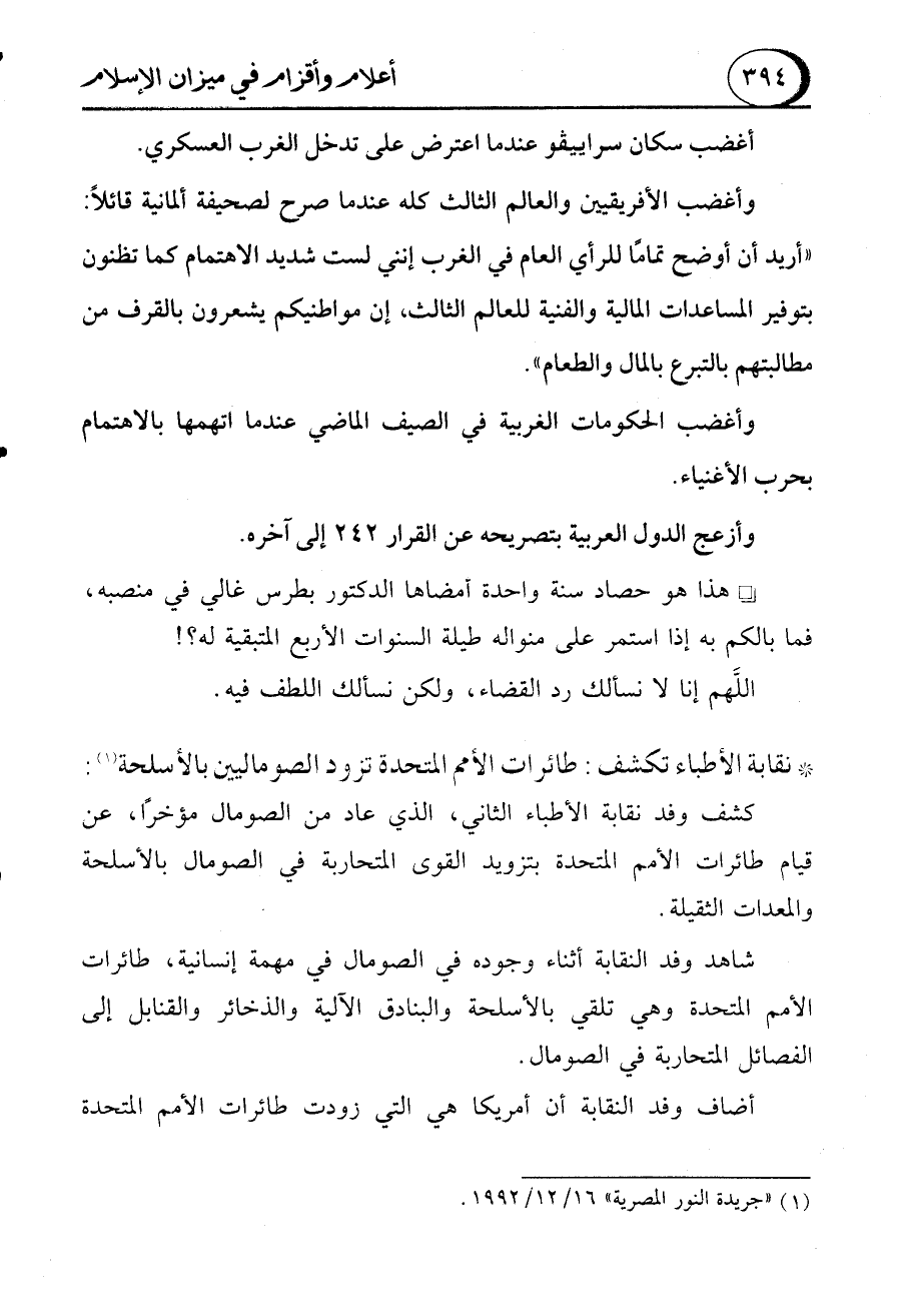 (1) "جريدة النور المصرية" 16/ 12/1992.