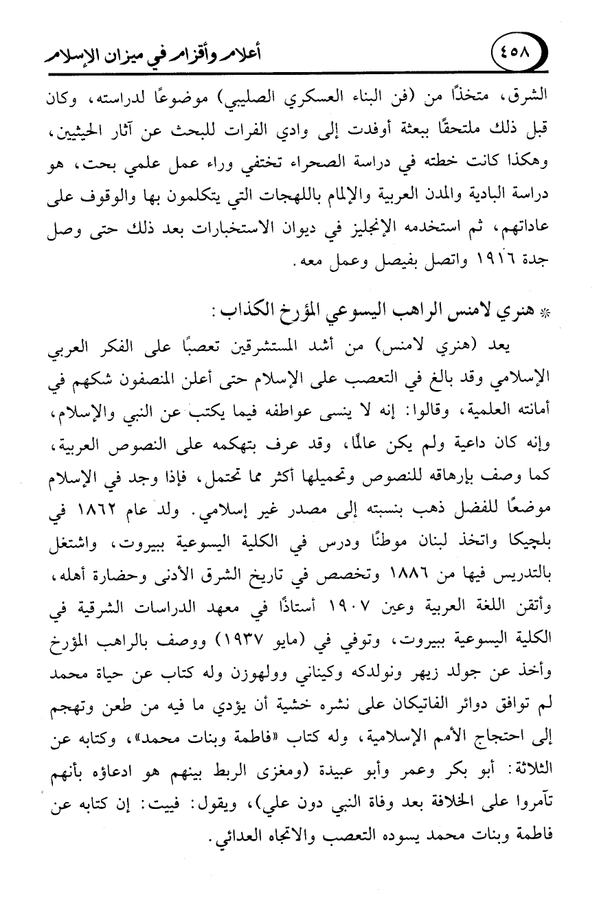 * هنري لامنس الراهب اليسوعي المؤرخ الكذاب:
