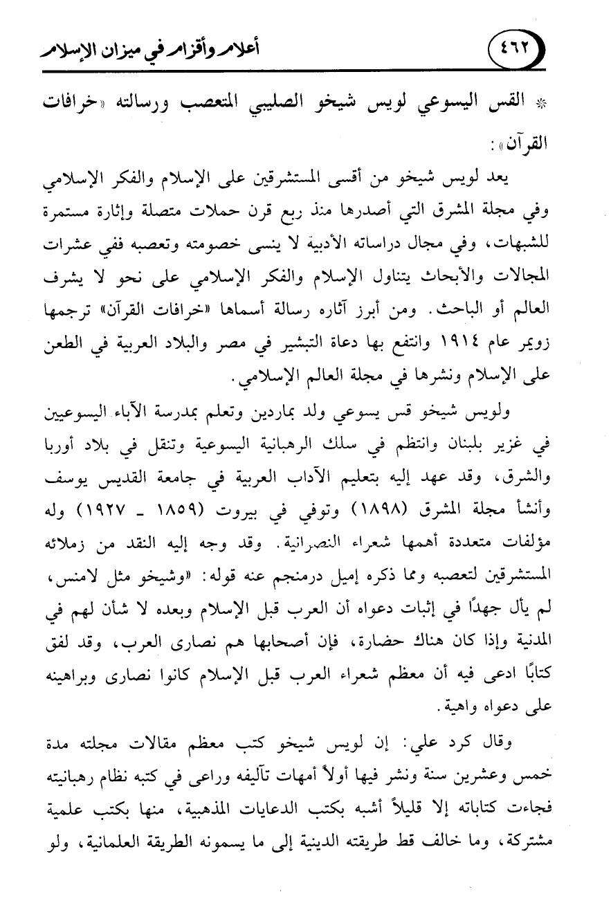 * القس اليسوعي لويس شيخو الصليبي المتعصب ورسالته "خرافات القرآن":