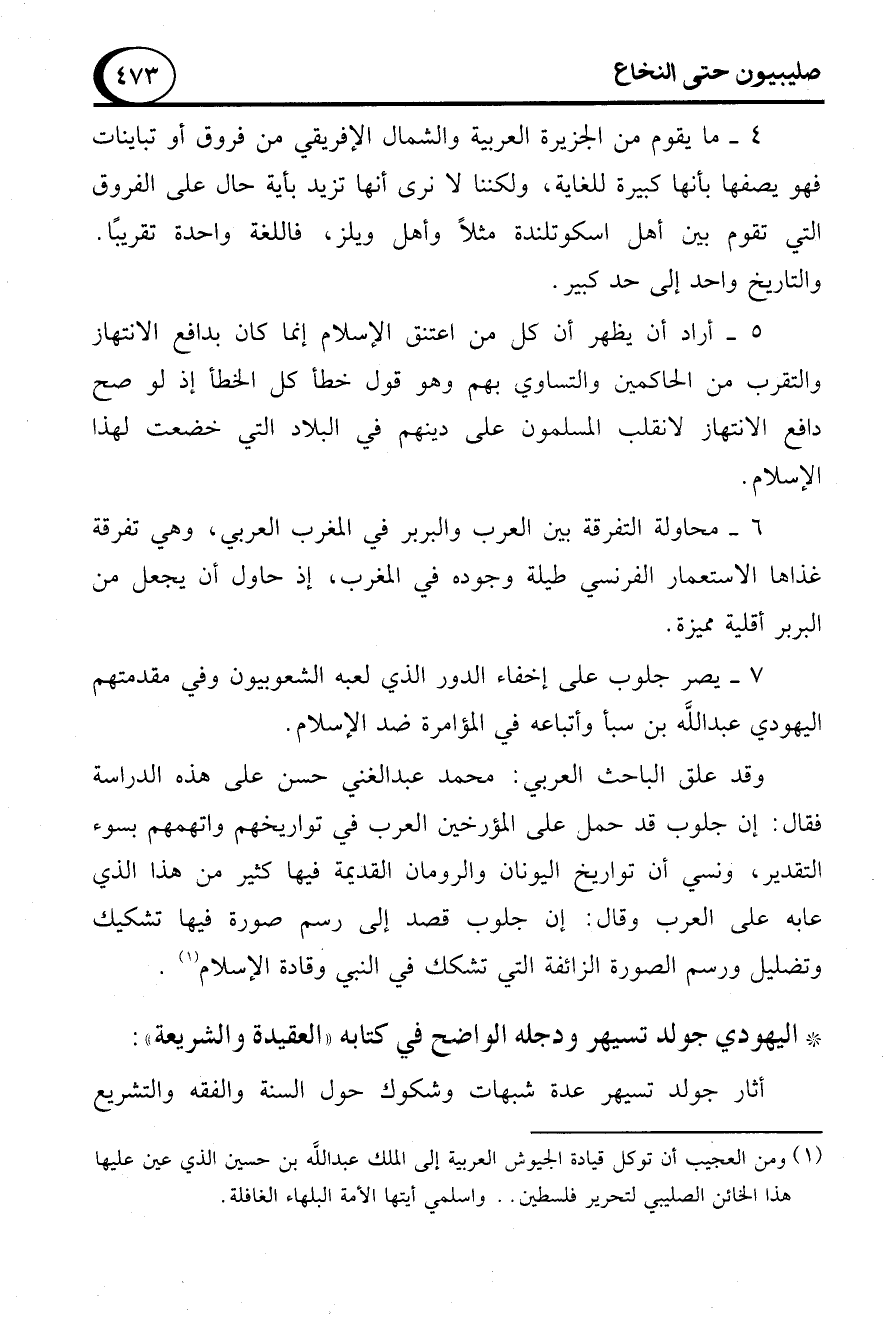 * اليهودي جولد تسيهر ودجله الواضح في كتابه "العقيدة والشريعة":