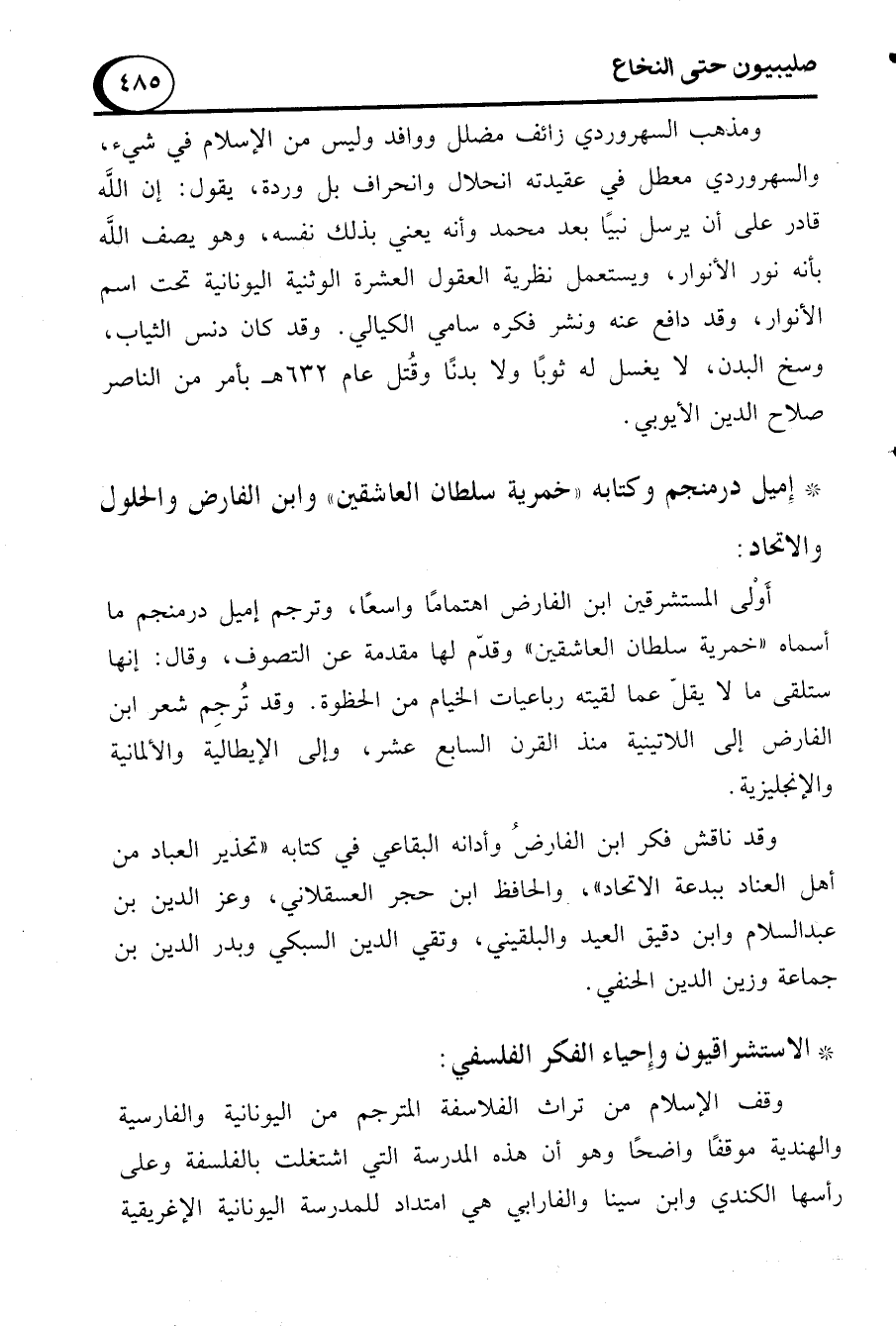 * إميل درمنجم وكتابه "خمرية سلطان العاشقين" وابن الفارض والحلول والاتحاد: