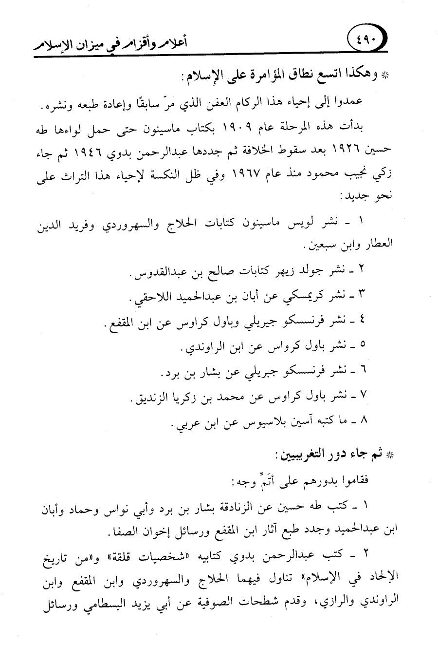 1 - نشر لويس ماسينون كتابات الحلاج والسهروردي وفريد الدين العطار وابن سبعين.
