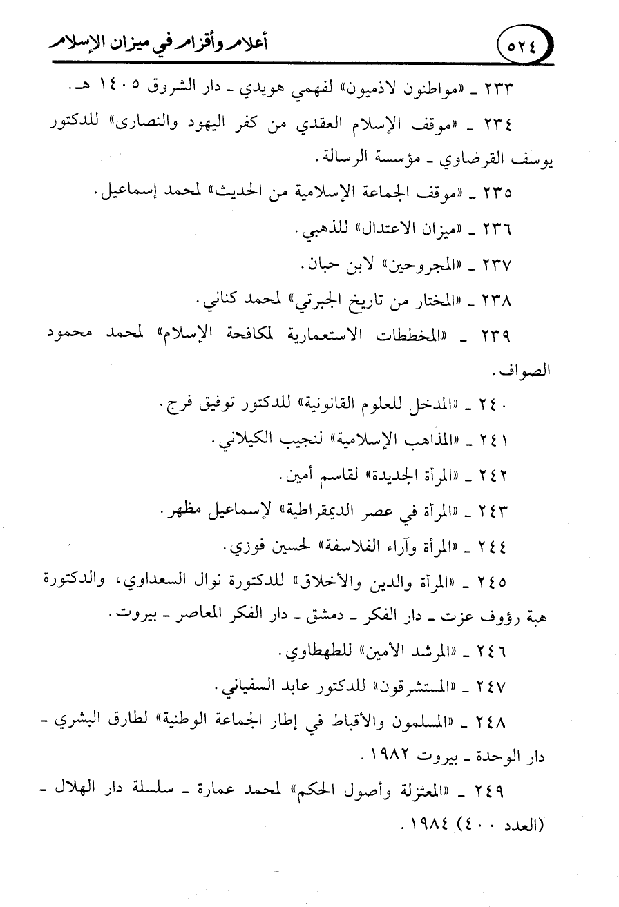 248 - "المسلمون والأقباط في إطار الجماعة الوطنية" لطارق البشري - دار الوحدة - بيروت 1982.