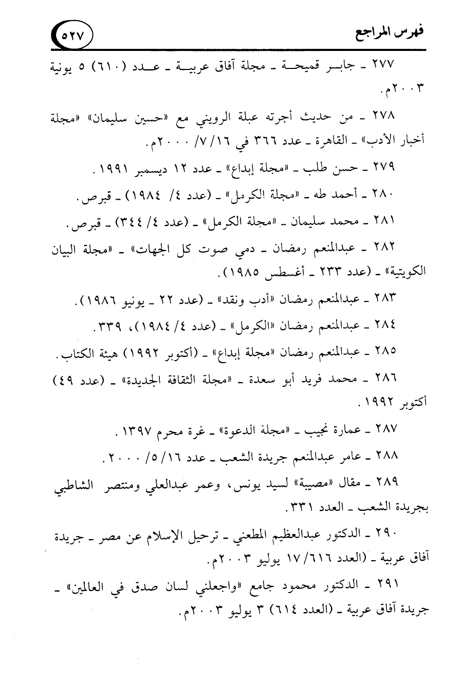 277 - جابر قميحة - مجلة آفاق عربية - عدد (610) 5 يونية 2003 م.