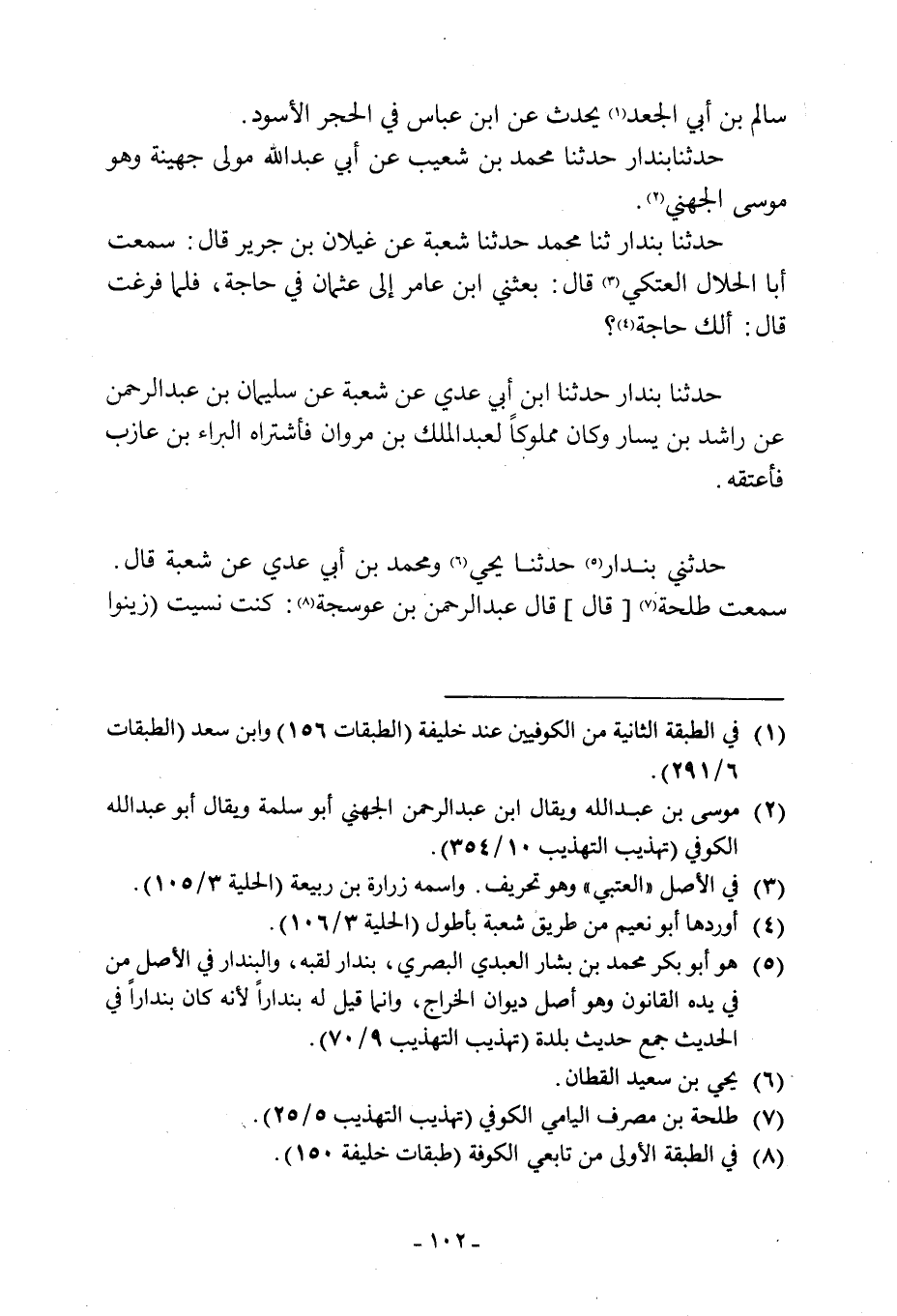 حدثني بندار [5] حدثنا يحي [6] وَمُحَمَّدُ بْنُ أَبِي عَدِيٍّ عَنْ شُعْبَةَ قَالَ.