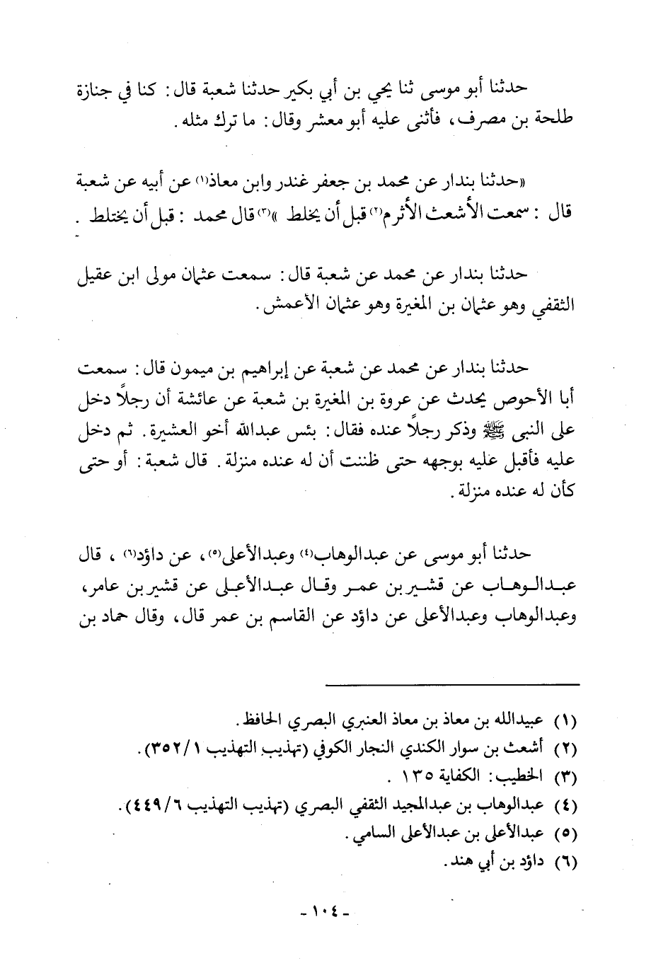 «حَدَّثَنَا بُنْدَارٌ عَنْ مُحَمَّدِ بْنِ جَعْفَرٍ غُنْدَرٌ وَابْنُ مُعَاذٍ [1] عَنْ أَبِيهِ عَنْ شُعْبَةَ قَالَ سَمِعْتُ الْأَشْعَثَ الْأَثْرَمَ [2] قَبْلَ أَنْ يَخْلِطَ» [3] .