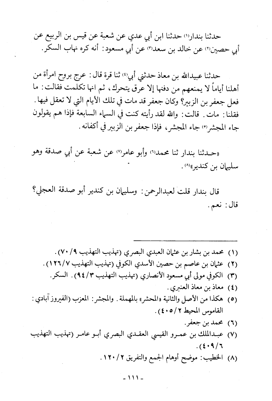 «حَدَّثَنَا بُنْدَارٌ ثَنَا مُحَمَّدٌ [6] وَأَبُو عَامِرٍ [7] عَنْ شُعْبَةَ عَنْ أَبِي صَدَقَةَ وَهُوَ سُلَيْمَانُ بْنُ كِنْدِيرٍ» [8] .