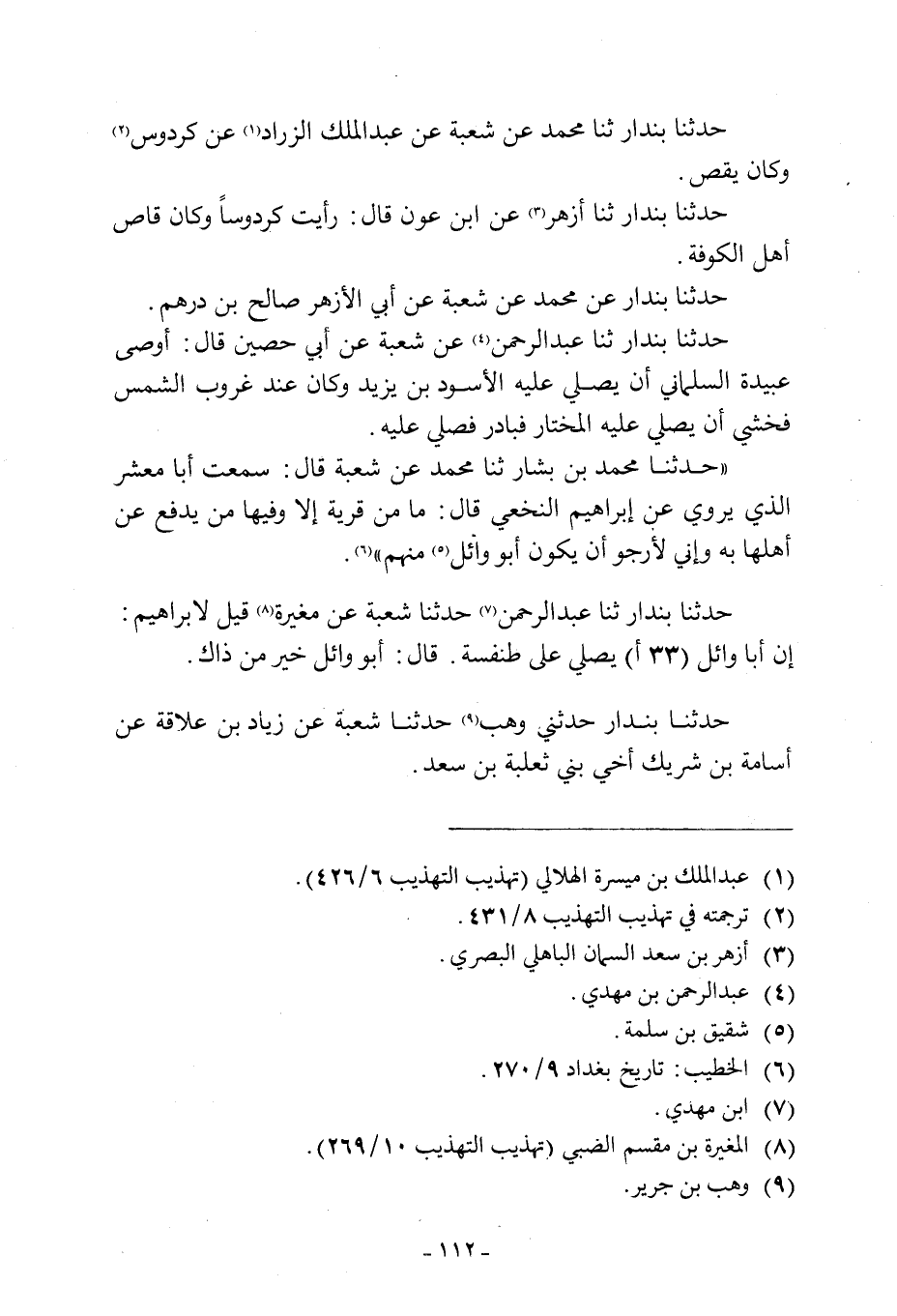حَدَّثَنَا بُنْدَارٌ ثَنَا عَبْدُ الرَّحْمَنِ [7] حَدَّثَنَا شُعْبَةُ عَنْ مُغِيرَةَ [8] قِيلَ لإبراهيم: