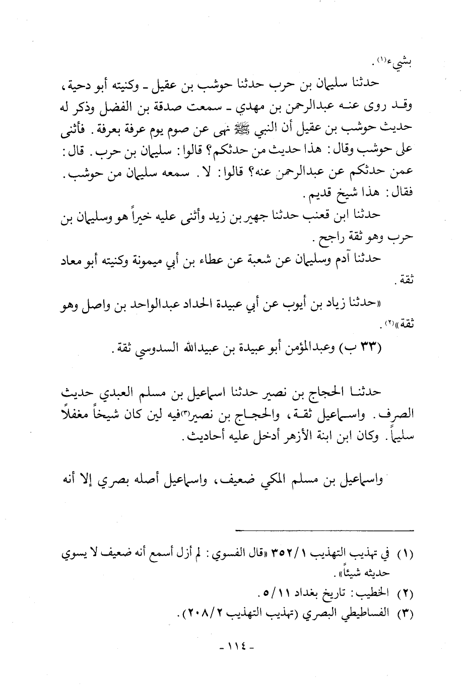 (33 ب) وَعَبْدُ الْمُؤْمِنِ أَبُو عُبَيْدَةَ بْنُ عُبَيْدٍ اللَّهِ السَّدُوسِيُّ ثِقَةٌ.