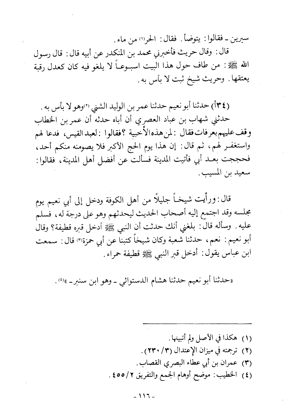 (34 أ) حَدَّثَنَا أَبُو نُعَيْمٍ حَدَّثَنَا عُمَرُ بْنُ الْوَلِيدِ الشَّنِّيُّ [2] وَهُوَ لَا بَأْسَ بِهِ.