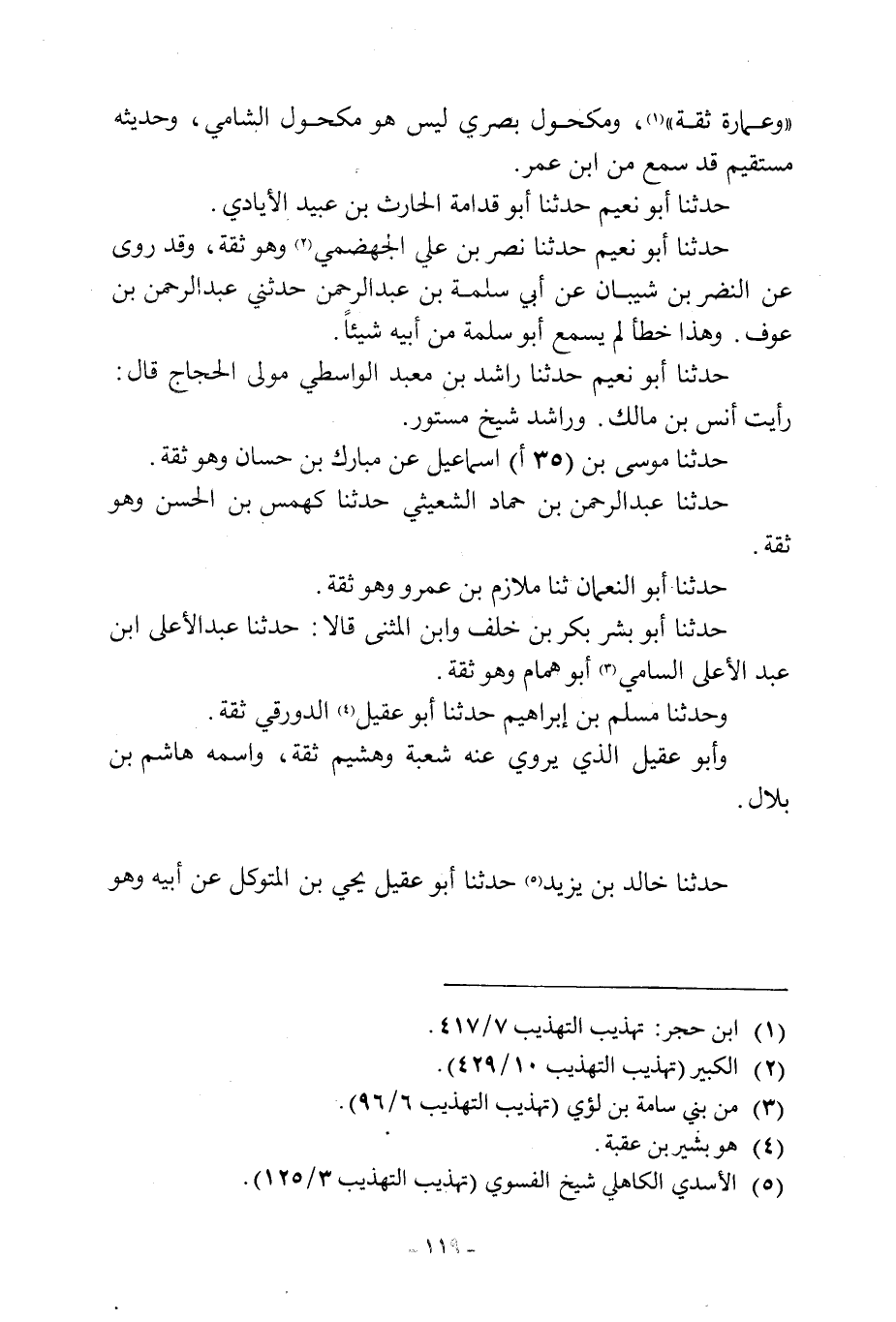 حَدَّثَنَا عَبْدُ الرَّحْمَنِ بْنُ حمَّادٍ الشَّعِيثِيُّ حَدَّثَنَا كَهْمَسُ بْنُ الْحَسَنِ وَهُوَ ثِقَةٌ.