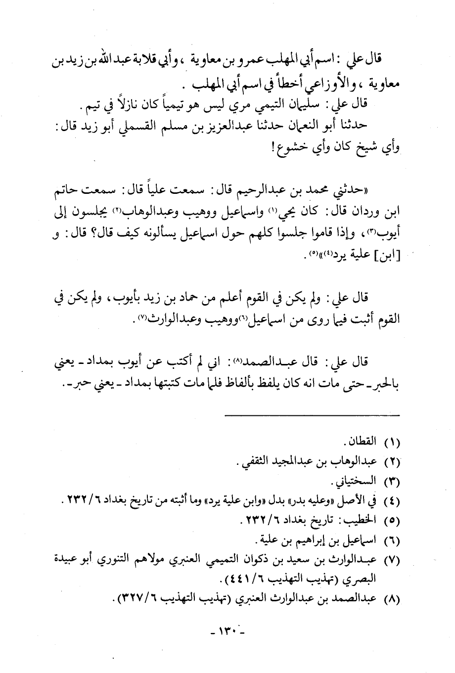[4] في الأصل «وعليه بدر» بدل «وابن علية يرد» وما أثبته من تاريخ بغداد 6/ 232.