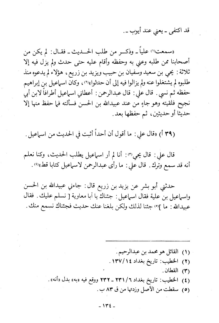 (39 أ) «قَالَ عَلِيٌّ: مَا أَقُولُ إِنَّ أَحَدًا أَثْبَتُ فِي الْحَدِيثِ مِنْ إِسْمَاعِيلَ.