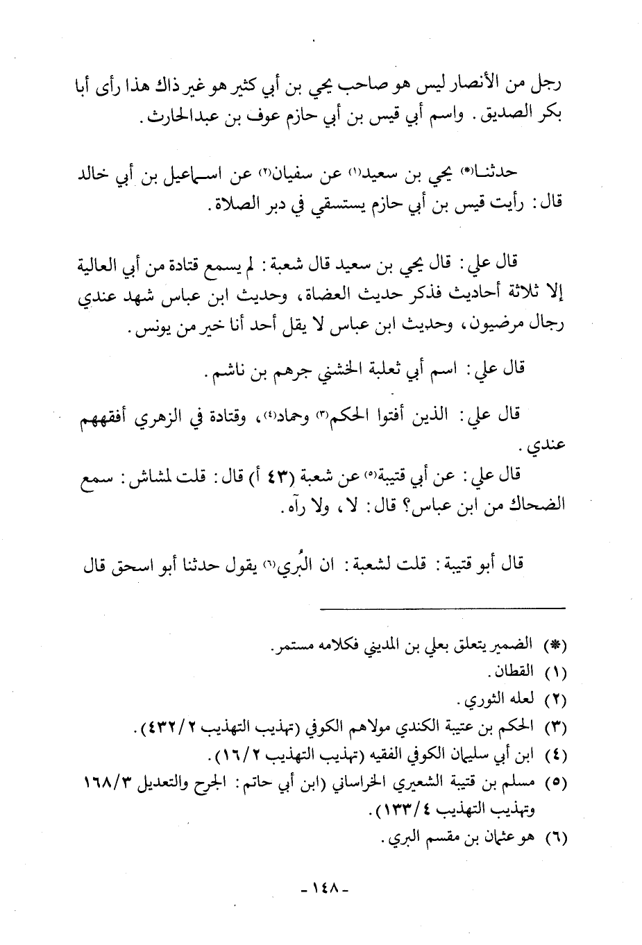 قَالَ عَلِيٌّ: عَنْ أبي قتيبة [6] عن شعبة (43 أ) قَالَ: قُلْتُ لِمُشَاشٍ: