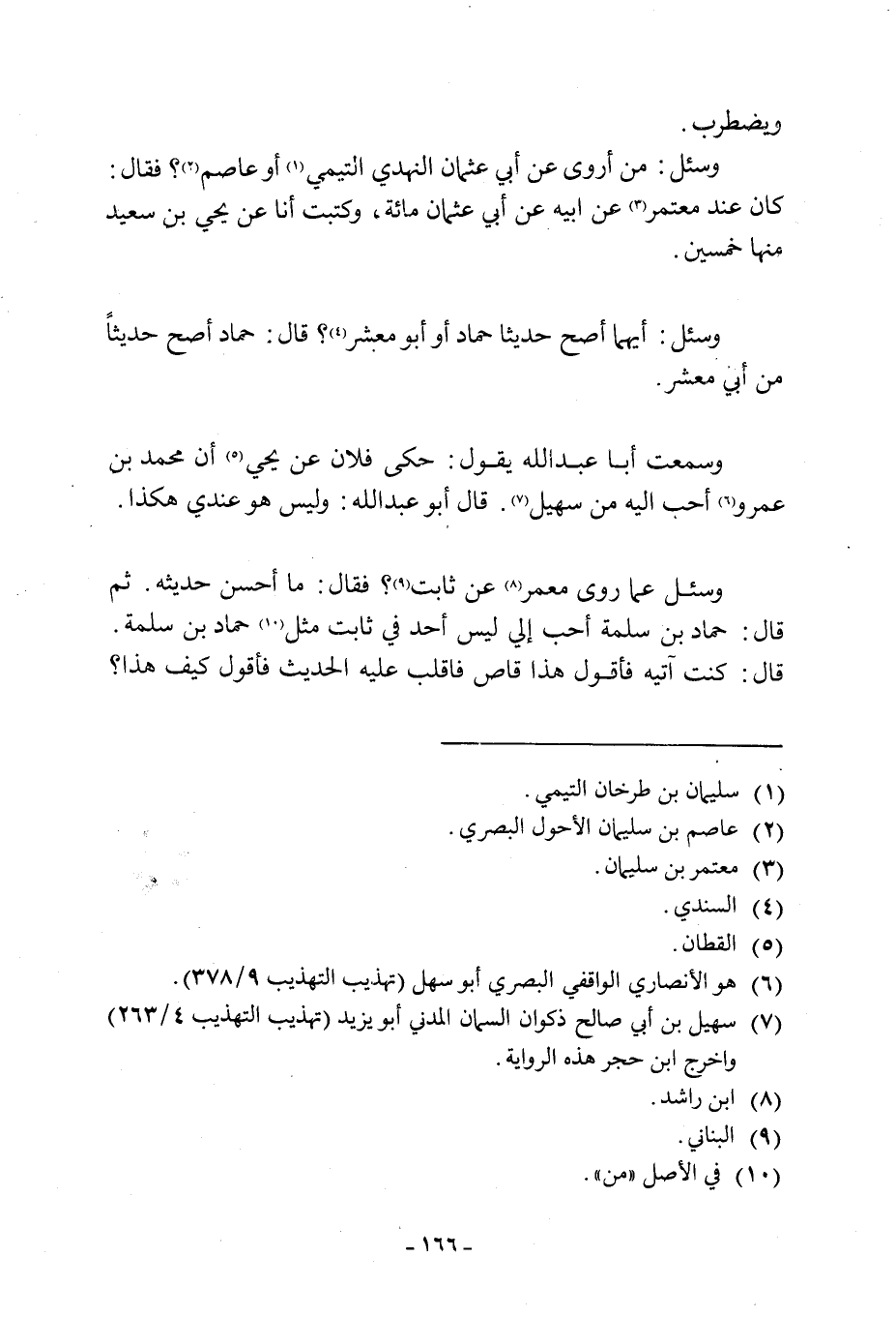 وَسَمِعْتُ أَبَا عبد الله يقول: حكى فلان عن يحي [5] أَنَّ مُحَمَّدَ بْنَ عَمْرٍو [6] أَحَبُّ إِلَيْهِ مِنْ سُهَيْلٍ [7] . قَالَ أَبُو عَبْدِ اللَّهِ: وَلَيْسَ هُوَ عِنْدِي هَكَذَا.