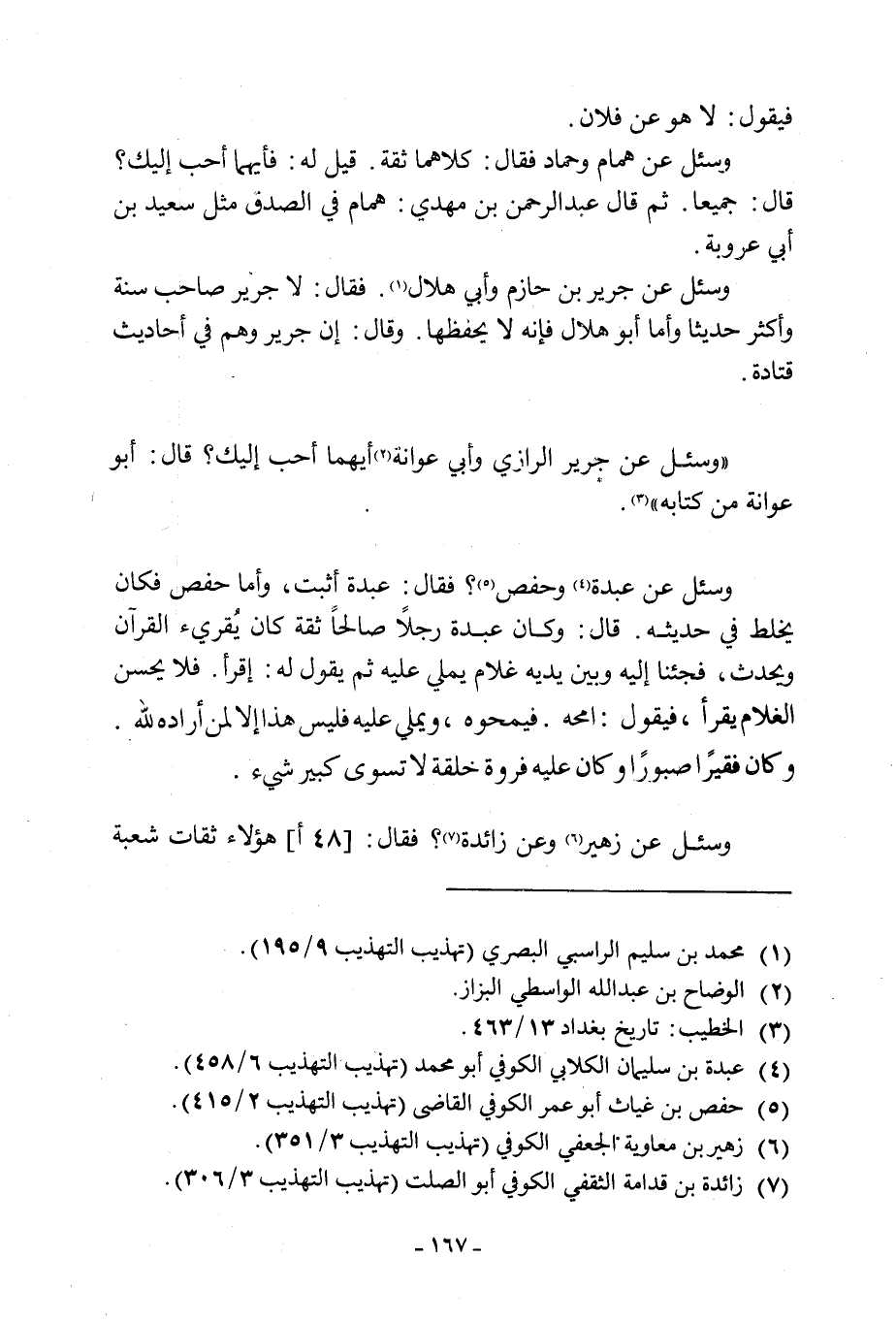 وَسُئِلَ عن زهير [6] وعن زائدة [7] ؟ فقال: [48 أ] هؤلاء ثقات