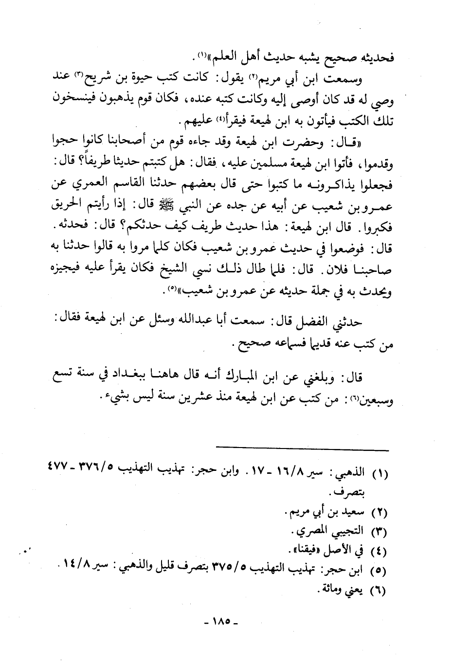 «قَالَ: وَحَضَرْتُ ابْنَ لَهِيعَةَ وَقَدْ جَاءَهُ قَوْمٌ مِنْ أَصْحَابِنَا كَانُوا حَجُّوا وَقَدِمُوا، فَأَتَوُا ابْنَ لَهِيعَةَ مُسَلِّمِينَ عَلَيْهِ، فَقَالَ: هَلْ كَتَبْتُمْ حَدِيثًا طَرِيفًا؟