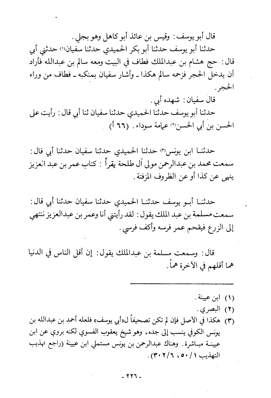 [3] هكذا في الأصل فأن لم تكن تصحيفا ل «أبي يوسف» فلعله أحمد بن عبد الله بن يونس الكوفي ينسب الى جده، وهو شيخ يعقوب الفسوي لكنه يروي عن ابن عيينة مباشرة. وهناك عبد الرحمن بن يونس مستملي ابن عيينة (راجع تهذيب التهذيب 1/ 50، 6/ 302)