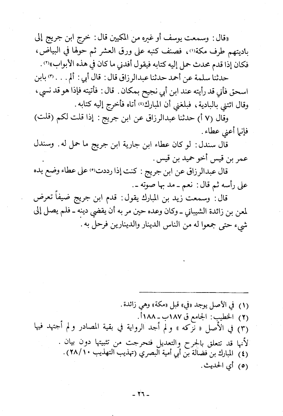 [3] في الأصل «نتركه» ولم أجد الرواية في بقية المصادر ولم اجتهد فيها لأنها قد تتعلق بالجرح والتعديل فتحرجت من تثبيتها دون بيان.