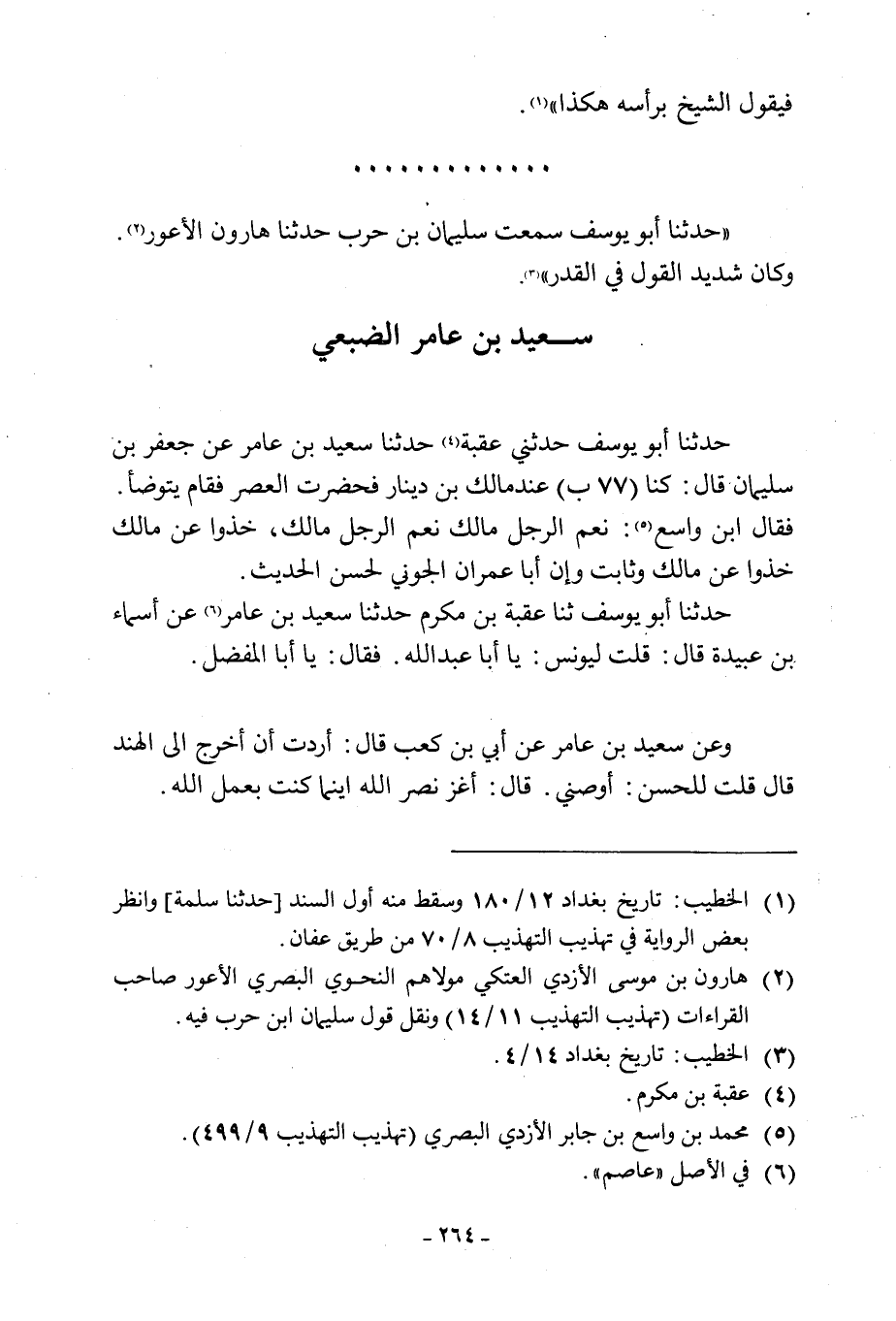 [1] الخطيب: تاريخ بغداد 12/ 180 وسقط منه أول السند [حدثنا سلمة] وانظر بعض الرواية في تهذيب التهذيب 8/ 70 من طريق عفان.