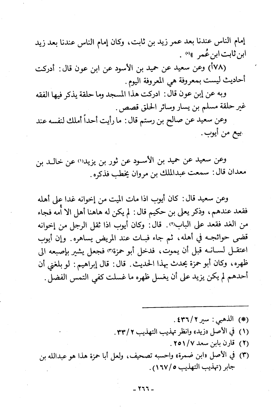 وَعَنْ سَعِيدٍ قَالَ: كَانَ أَيُّوبُ إِذَا مَاتَ الْمَيِّتُ مِنْ إِخْوَانِهِ غَدَا عَلَى أَهْلهِ فَقَعَدَ عِنْدَهُمْ، وَذَكَرَ يَعْلَى بْنَ حكيم قال: لم يكن له هاهنا أَهْلٌ إِلَّا أُمُّهُ فَجَاءَ مِنَ الْغَدِ فَقَعَدَ عَلَى الْبَابِ [2] . قَالَ: وَكَانَ أَيُّوبُ إِذَا ثَقُلَ الرَّجُلُ مِنْ إِخْوَانِهِ قَضَى حَوَائِجَهُ فِي أَهْلِهِ، ثُمَّ جَاءَ فَبَاتَ عِنْدَ الْمَرِيضِ يُسَاهِرُهُ. وَإِنَّ أَيُّوبَ اعْتُقِلَ لِسَانُهُ قَبْلَ أَنْ يَمُوتَ، فَدَخَلَ أَبُو حَمْزَةَ [3] فَجَعَلَ يُشِيرُ بِإِصْبُعِهِ إِلَى ظَهْرِهِ، وَكَانَ أَبُو حَمْزَةَ يُحَدِّثُ بِهَذَا الْحَدِيثِ. قَالَ: قَالَ إِبْرَاهِيمُ: