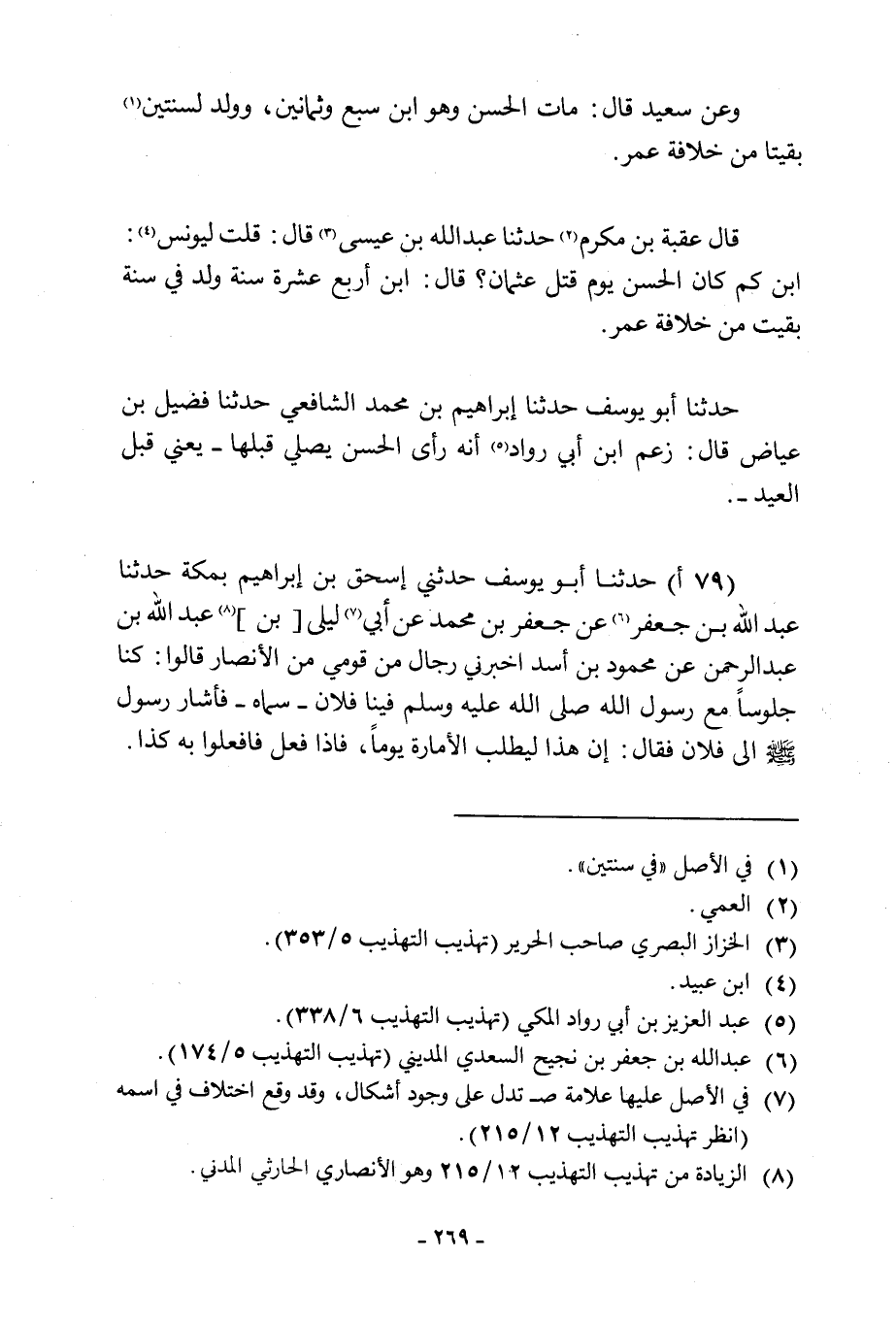 [7] في الأصل عليها علامة ص تدل على وجود إشكال، وقد وقع اختلاف في اسمه (انظر تهذيب التهذيب 12/ 215) .