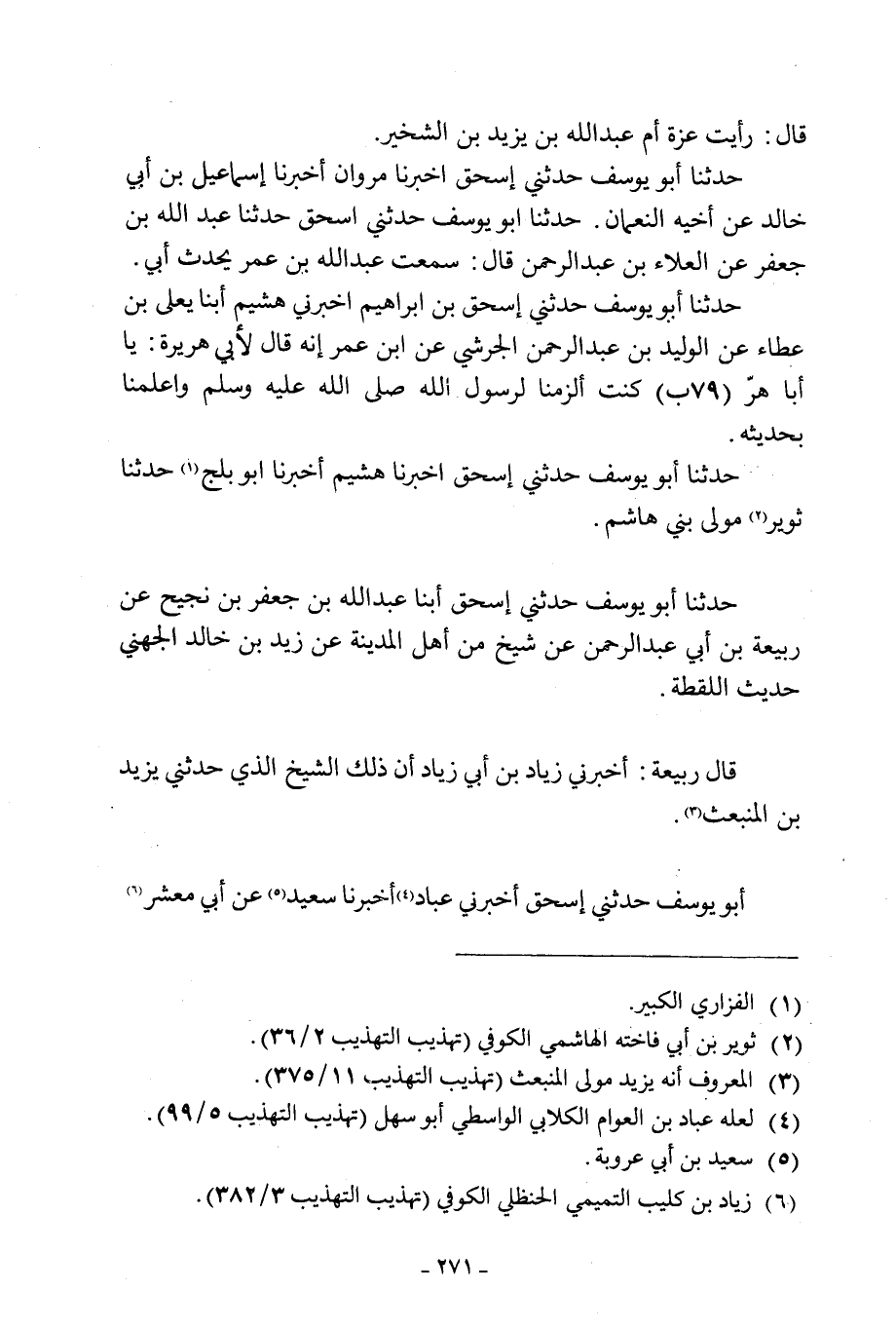 حَدَّثَنَا أَبُو يُوسُفَ حَدَّثَنِي إِسْحَاقُ أَخْبَرَنَا هُشَيْمٌ أَخْبَرَنَا أَبُو بَلَجٍ [1] حَدَّثَنَا ثُوَيْرٌ [2] مَوْلَى بَنِي هَاشِمٍ.