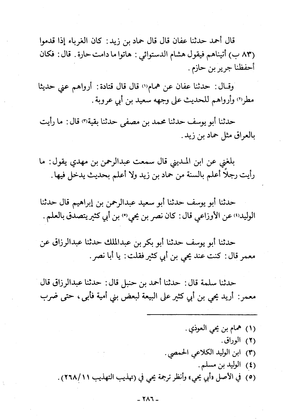 حَدَّثَنَا الْوَلِيدُ [4] عَنِ الأوزاعي قال: كان نصر بن يحي [5] بْنِ أَبِي كَثِيرٍ يَتَصَدَّقُ بِالْعِلْمِ.