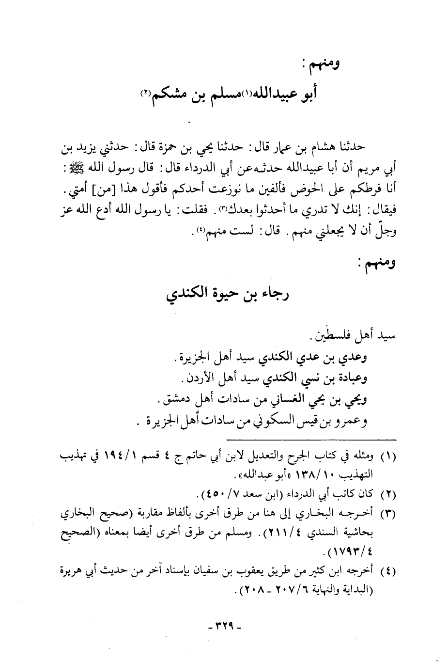 وَعُبَادَةُ بْنُ نَسِيٍّ الكندي سيد أهل الأردن.