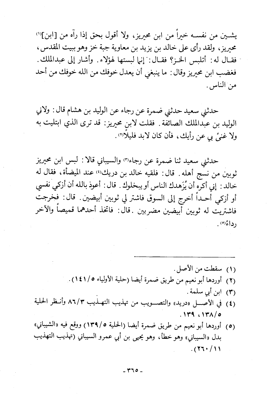 [5] أوردها ابو نعيم من طريق ضمرة أيضا (الحلية 5/ 139) ووقع فيه «الشيبانيّ» بدل «السيباني» وهو خطأ، وهو يحي بن أبي عمرو السيباني (تهذيب التهذيب 11/ 260) .