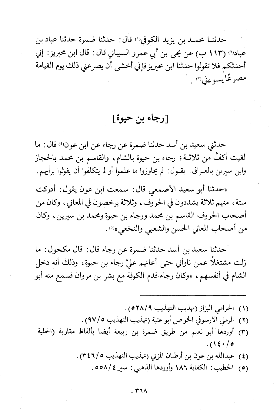حَدَّثَنِي سعيد بن أسد حدثنا ضمرة عن رجاء عَنِ ابْنِ عَوْنٍ [4] قَالَ: