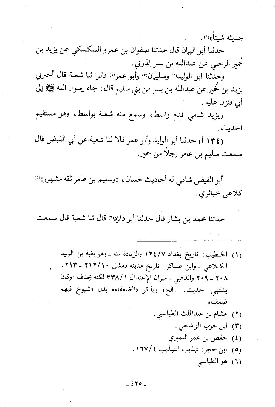 [1] الخطيب: تاريخ بغداد 7/ 124 والزيادة منه- وهو بقية بن الوليد الكلاعي- وابن عساكر: تاريخ مدينة دمشق 10/ 212- 213، 208- 209 والذهبي: ميزان الاعتدال 1/ 338 لكنه يحذف «وكان يشتهي الحديث ... إلخ» ويذكر «الضعفاء» بدل «شيوخ فيهم ضعف» .