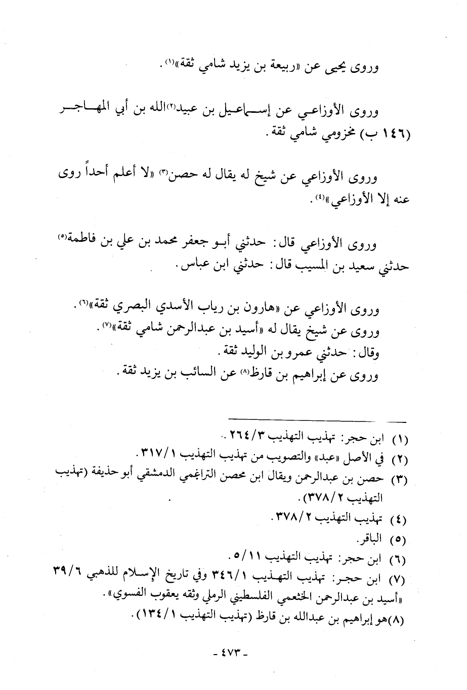 وَرَوَى الْأَوْزَاعِيُّ عَنْ «هَارُونَ بْنِ رياب الْأَسَدِيِّ الْبَصْرِيِّ ثِقَةٌ» [6] .